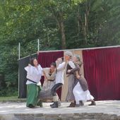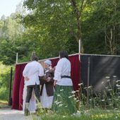Die Theatergrupper FLUCHTKOMITEE REIßVERSCHLUSS weihte mit ihrer Darbietung die neue Freilichtbühne ein.